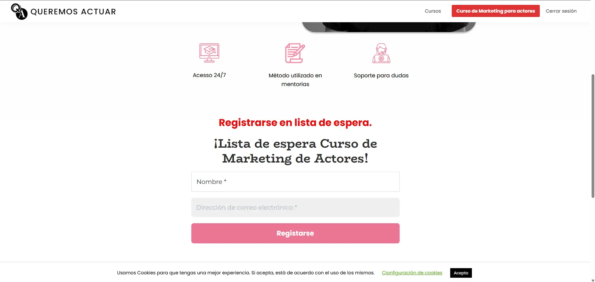 El diseño Queremos Actuar fue a partir de una plantilla prediseñada de Genesis Framework, elegimos la más adecuada para su tipo de producto y colores.Personalizaciones en HTML y CSS de el LMS Sensei, adecuandolo a la imagen de marca del proyecto.